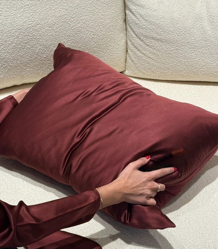 Bordo çok zarif bir ton, dokusu da inanılmaz konforlu. Geceleri resmen serinletiyor.